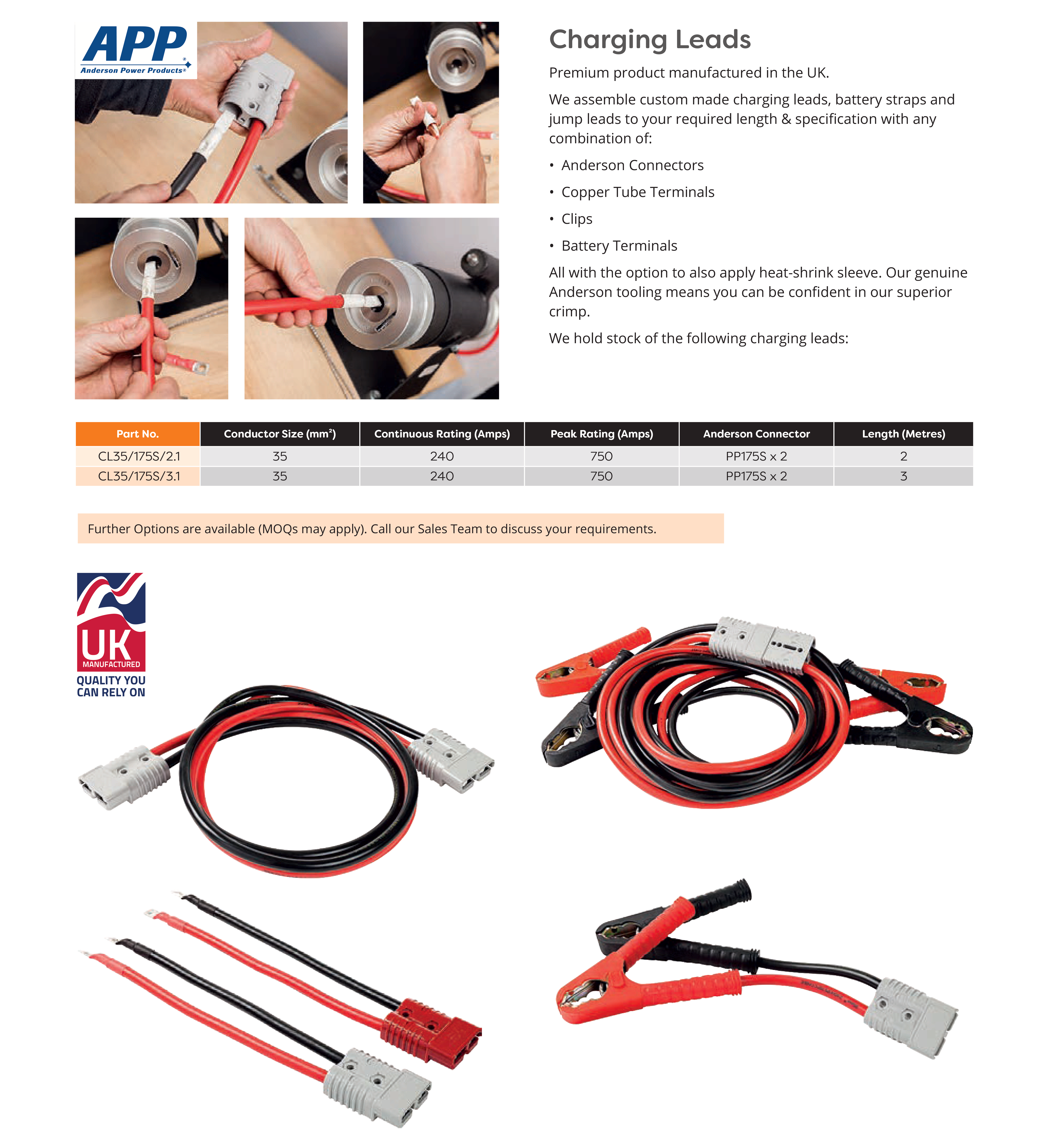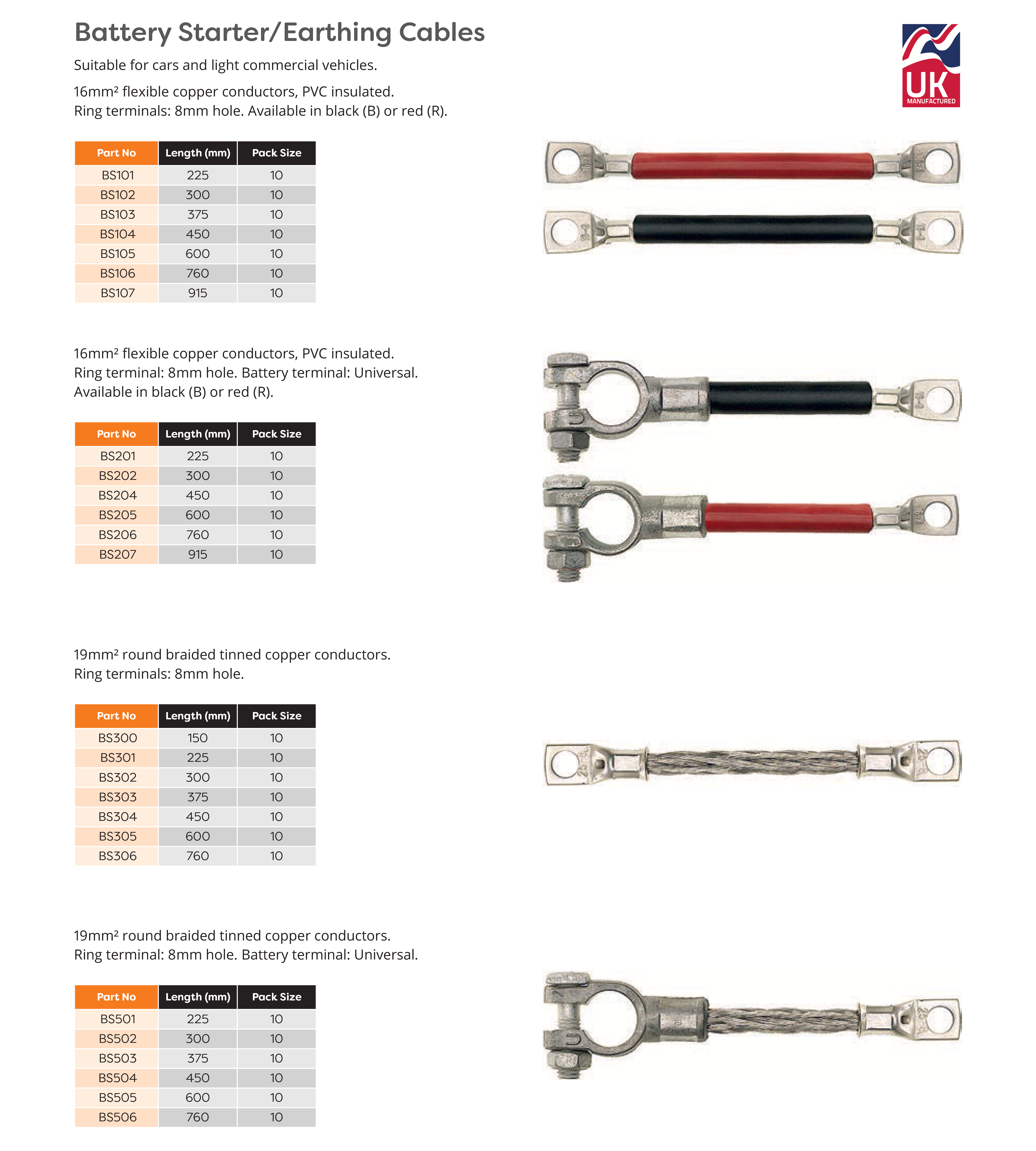 • Battery Starter/Earthing Cables