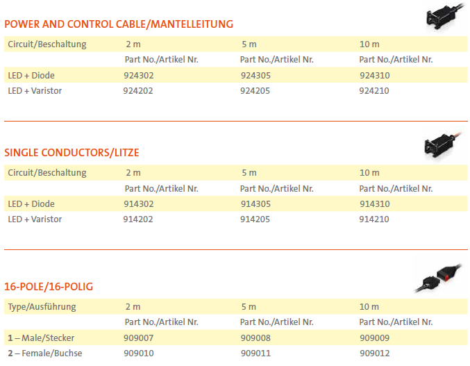 ORDER CODE/BESTELLNUMMERN